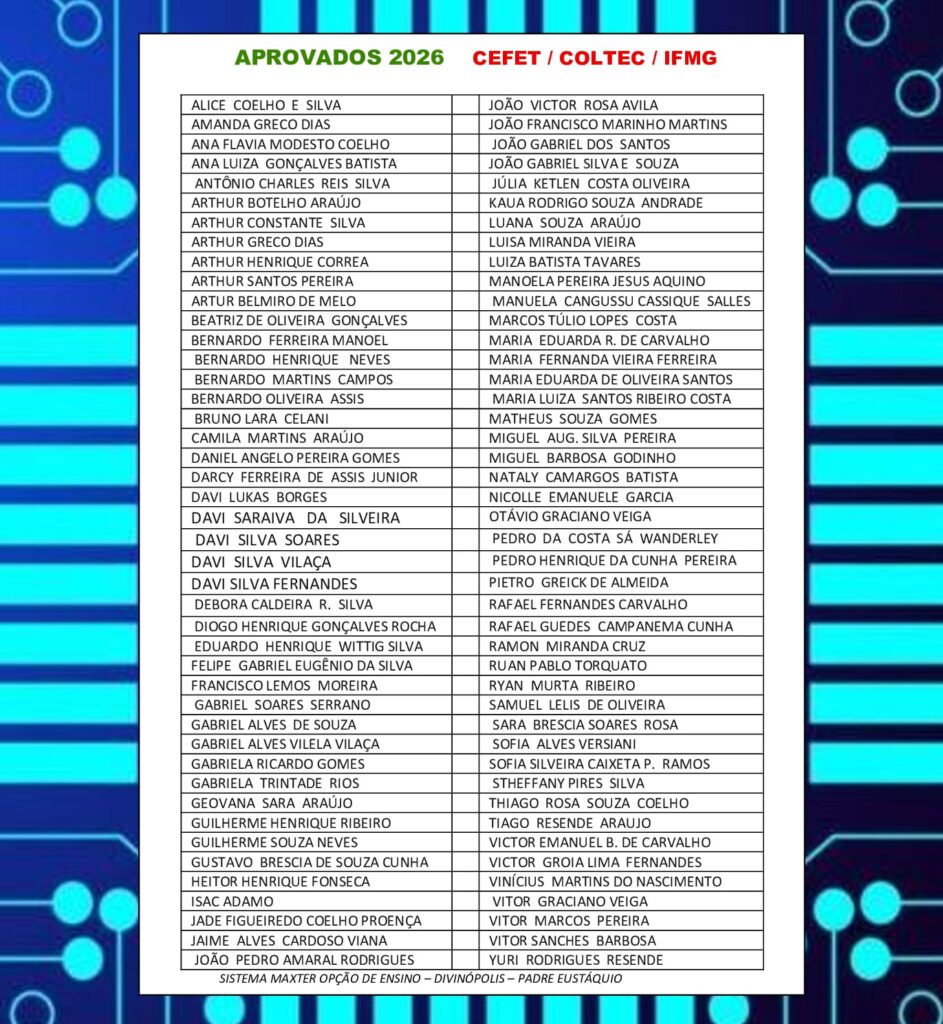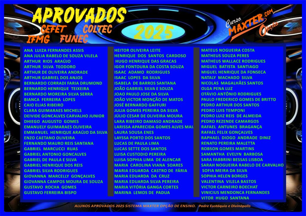 Seu sonho de ingressar no CEFET/COLTEC/IFMG pode se tornar realidade, pois o Cursinho Pré-Cefet/Coltec/Ifmg do Curso Maxter possui a melhor estratégia de ensino de BH. Assim, ajudando nossos alunos a conquistarem uma vaga no cefet, coltec e ifmg. Como os alunos presentes nesta página de aprovados.